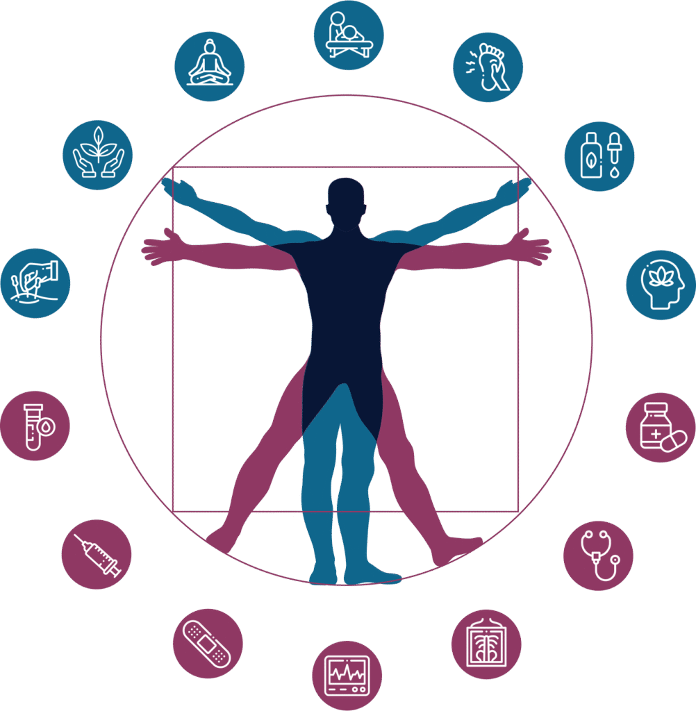 יוגה | שיאצו | טאי צ׳י | אקופונקטורה (דיקור) | מדיטציה ומיינדפולנס | רפלקסולוגיה | הומאופתיה | עיסוי וטיפול במגע | דמיון מודרך ותודעה | רפואת צמחים | חמלה ושפה חיובית
